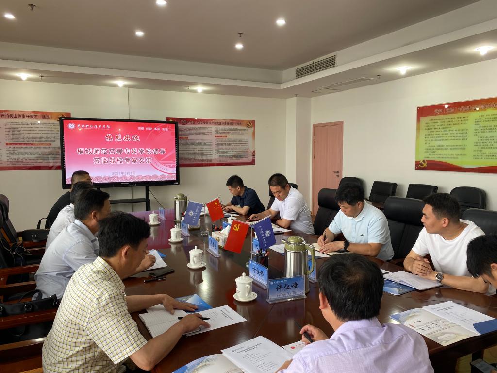 6月3日上午,桐城师范高等专科学校党委委员、副校长吴登明等一行来我校考察交流。校党委委员、副校长季慕寅,校企合作处、经济管理学院、基建办等部门负责人参加座谈交流。