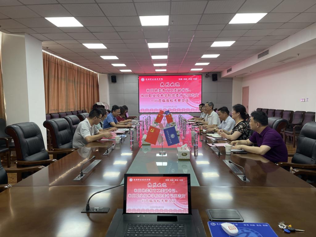 8月2日,和田地委教育工委副书记、和田职业技术学院党委书记王志文一行来我校考察交流。我校党委副书记、校长高武,党委委员、宣传部部长曾友山,党委委员、教务处处长娄洁及招生就业处、食品与生物工程学院、园林园艺学院负责人参加接待。