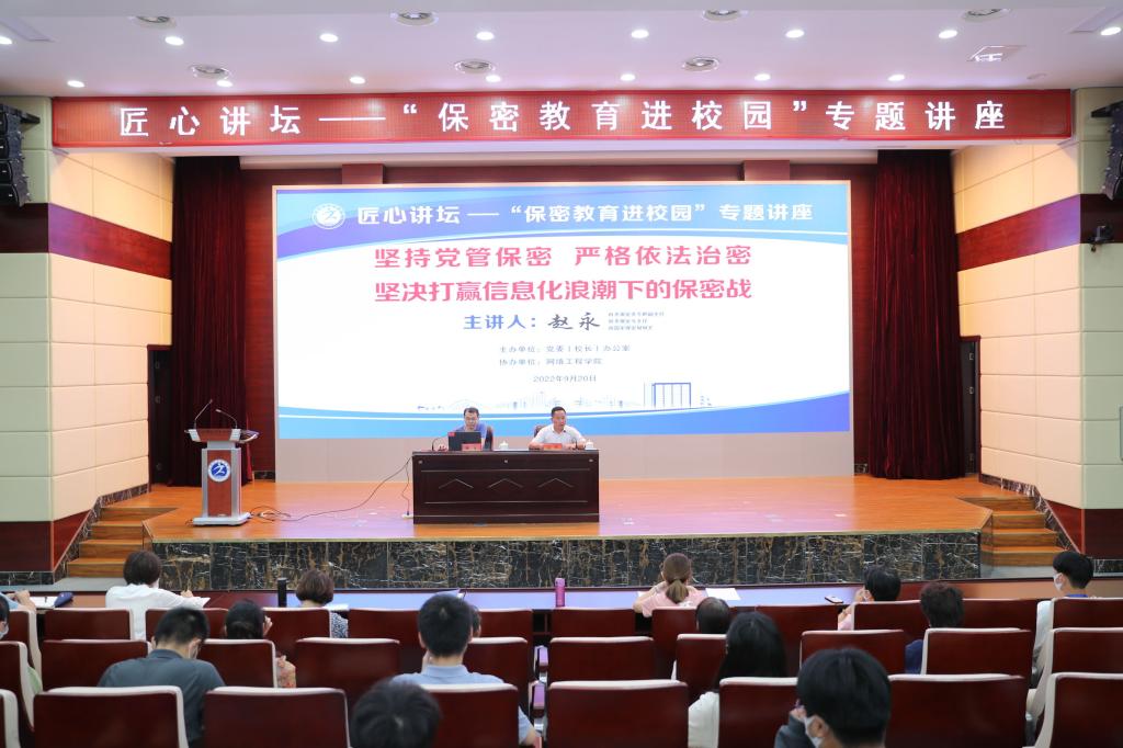 为深入学习贯彻习近平总书记总体国家安全观,提高我校师生国家安全和保密意识,提升安全保密工作水平,9月20日下午,由党委(院长)办公室主办、网络工程学院协办的“保密教育进校园”专题讲座在文津校区图书馆学术报告厅举行。讲座邀请到市委保密委专职副主任、市委保密办主任、市国家保密局局长赵永作专题宣讲。我校保密工作领导小组办公室全体成员、网络工程学院师生代表现场聆听了讲座。讲座由校党委委员、党委(院长)办公室主任刘权主持。